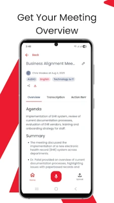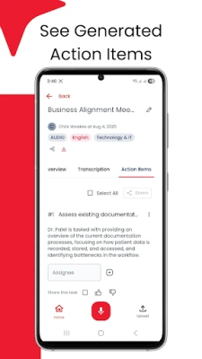 Ga masana'antu da ƙungiyoyi, AktionAI yana mayar da tattaunawa zuwa matakan aiki mai inganci. Ka daina wahalar rubuta takardun minti na taro da bi diddigi mai wahala. AktionAI yana ba da taƙaitattun tarurruka nan take, yana tsara abubuwan da aka tattauna zuwa tsari mai tsabta cikin ƴan daƙiƙu. Bugu da ƙari, yana ciro ayyuka da matakai na gaba ta atomatik, yana tabbatar da cewa ba a manta da komai ba. Yana aiki da harsuna daban-daban ciki har da Ingilishi, Hindi, Tamil, Bengali, Spanish, Faransanci da sauran su. Har ma yana da yanayin aiki ba tare da intanet ba, inda AI ke aiwatar da bayanai da zarar an dawo kan layi, kuma yana tabbatar da tsaro da sirrin bayananka. Wannan kayan aikin ya dace musamman ga masu kanana da matsakaitan masana'antu (MSME), ƙungiyoyin tallace-tallace, ƙungiyoyin gudanarwa, manajoji, da ma'aikatan nesa.