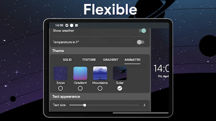 Abu mafi ban mamaki game da ita shine yadda take da sauƙin daidaitawa don dacewa da salonku na musamman. Kuna da cikakken iko kan kowane fanni na nunin agogo. Kuna iya zaɓar girman agogon da kuke so, daga ƙarami mai ladabi zuwa babba mai jan hankali wanda ke bayyana a fili. Haka nan, akwai zaɓuɓɓuka da yawa na salon rubutu (font style) waɗanda zaku iya gwadawa, don ba da agogonku wani kamanni na musamman. Bugu da ƙari, kuna iya canza launin agogon da kansa, tare da zaɓin launuka marasa adadi don tabbatar da cewa ya yi daidai da kowane yanayi ko kowane baya da kuka zaɓa. Ba wai kawai waɗannan ba, akwai kuma sauran siffofin da za ku iya daidaitawa don tabbatar da cewa nuninku ya kasance cikakke yadda kuke so.