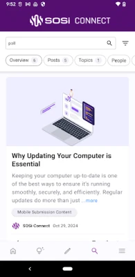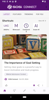 A cikin SOSi Connect, za ku sami damar samun labarai na gaba-gaba da sanarwa masu mahimmanci kai tsaye a kan na'urarku. Ba za ku sake rasa wani sabuntawa na kamfani ba, sanarwar hukuma, ko muhimman abubuwan da suka faru, duk ana isar da su cikin lokaci mai dacewa. Bugu da ƙari, wannan manhaja mai dacewa tana ba da damar shiga cikin sauƙi ga dukkanin kayan aikin da kuke amfani da su akai-akai a cikin ayyukanku na yau da kullum. Ko UKG ne, Costpoint, Azure AI, ko wasu kayan aikin masu mahimmanci, duk suna nan a yatsun ku don tallafawa aiki mai santsi, ingantaccen aiki, da kuma samar da sauƙin gudanar da ayyukan ku.